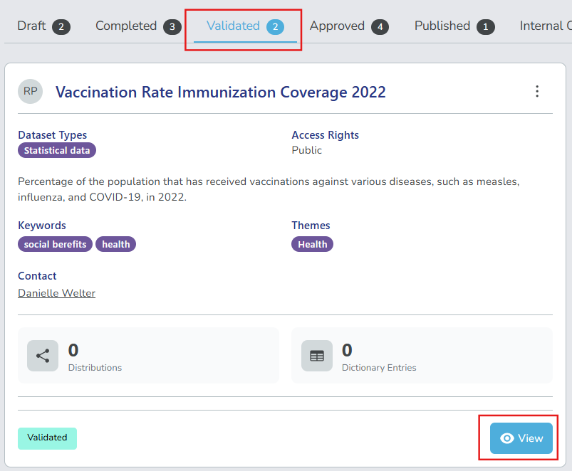 Approve datasets that have been validated to confirm they meet relevant publication standards before making them available for publication. This can include legal, ethical, and quality requirements.