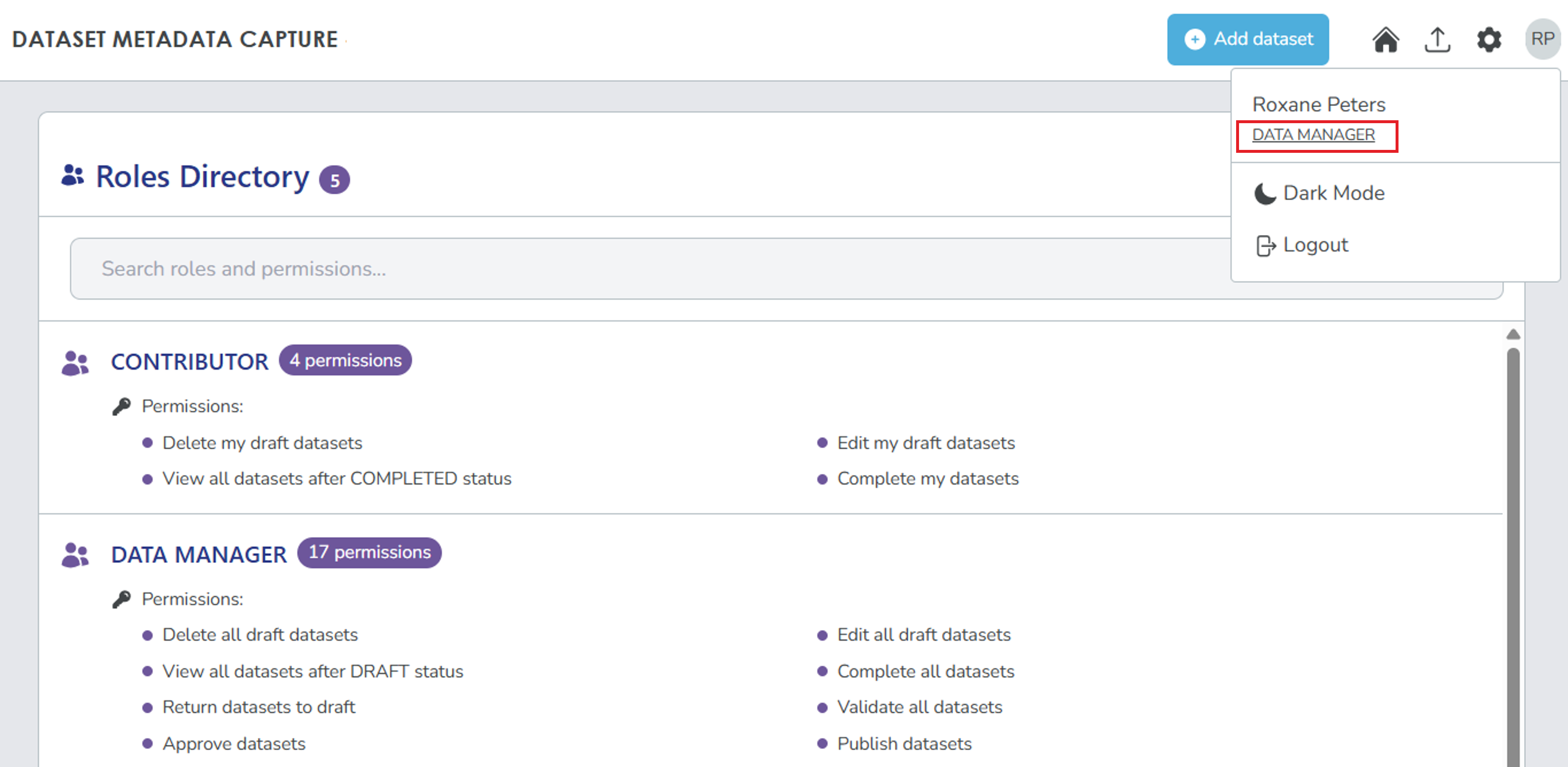 Your ability to perform actions on datasets depend on the roles and organisations assigned to you. You can hold multiple roles and be part of multiple organisations. Each role has granular permissions that determine what actions you can perform within that organisation.