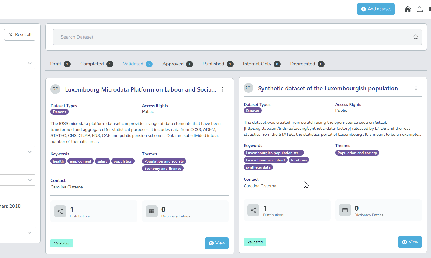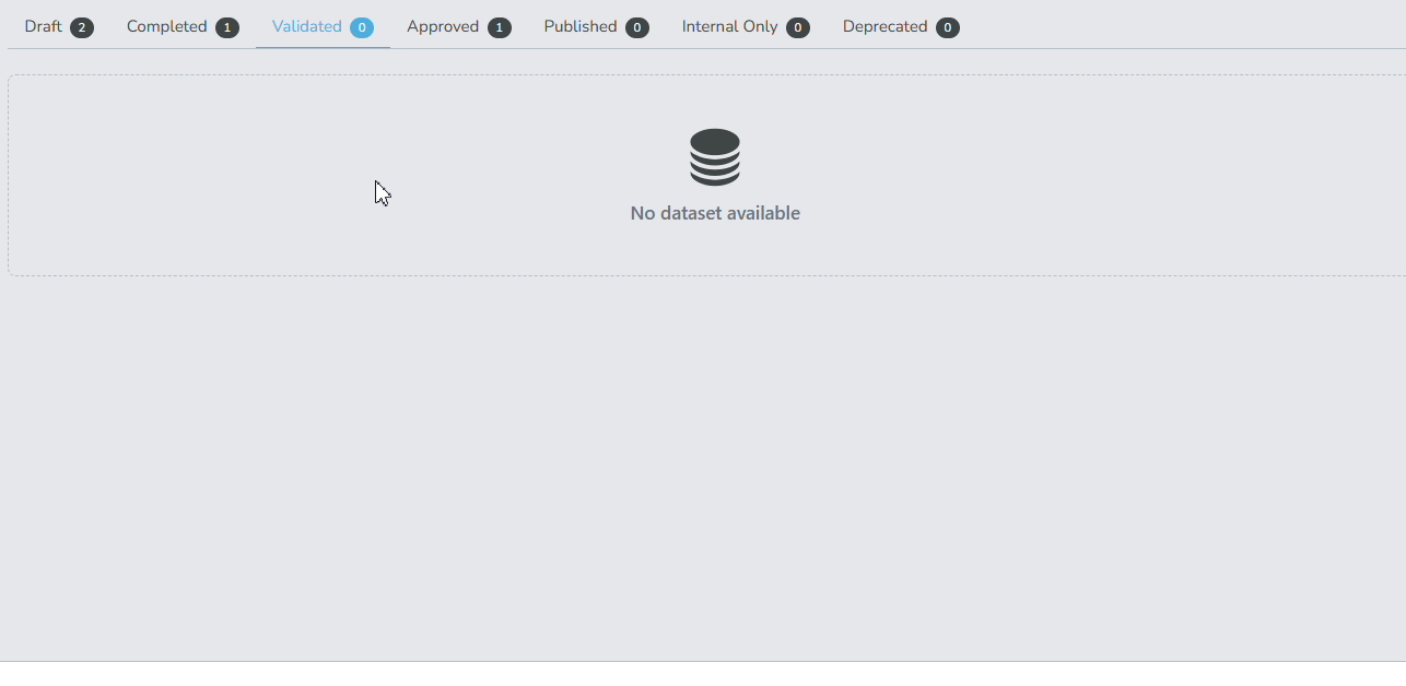 - Validated: Datasets that have been reviewed and are awaiting approval.